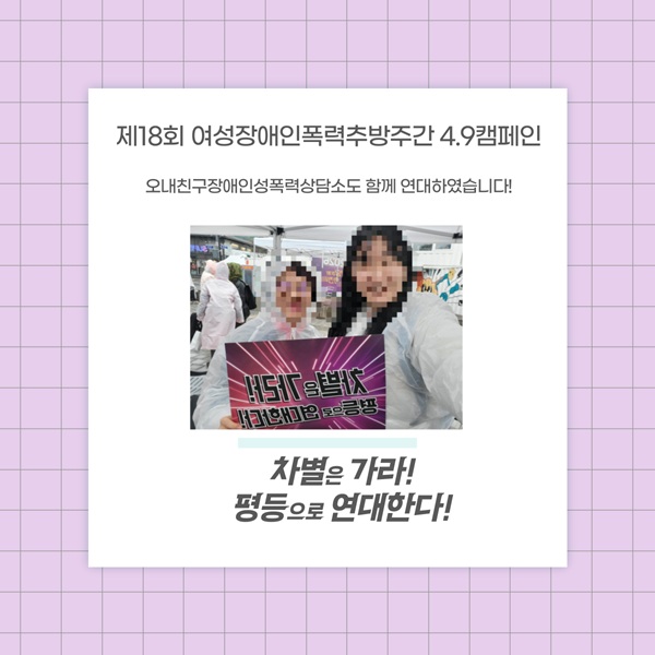 "제18회 여성장애인폭력추방주간 4.9캠페인"에 오내친구장애인성폭력상담소도 함께 연대 했습니다.