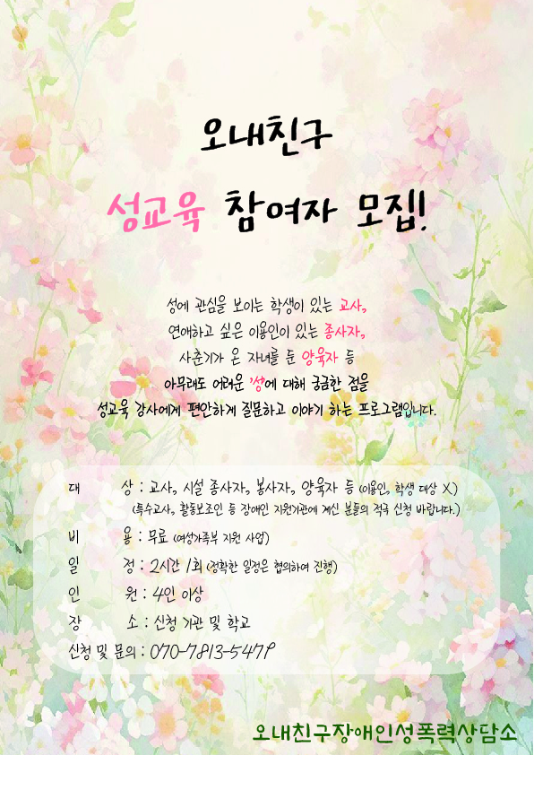 [ 모집 ] 오내친구상담소 성교육(홍보사업) 안내